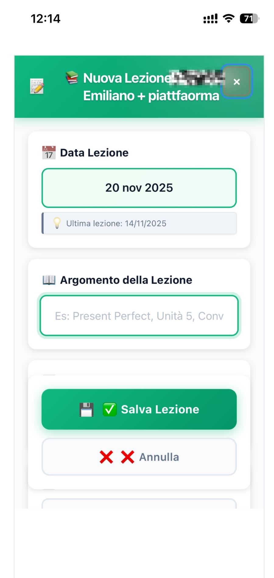Finalmente posso vedere tutto in un'unica pagina: livelli, scadenze, materiali consegnati, certificazioni necessarie, simulazioni, note dei professori e pagamenti. Non devo più rincorrere fogli o ricostruire informazioni.